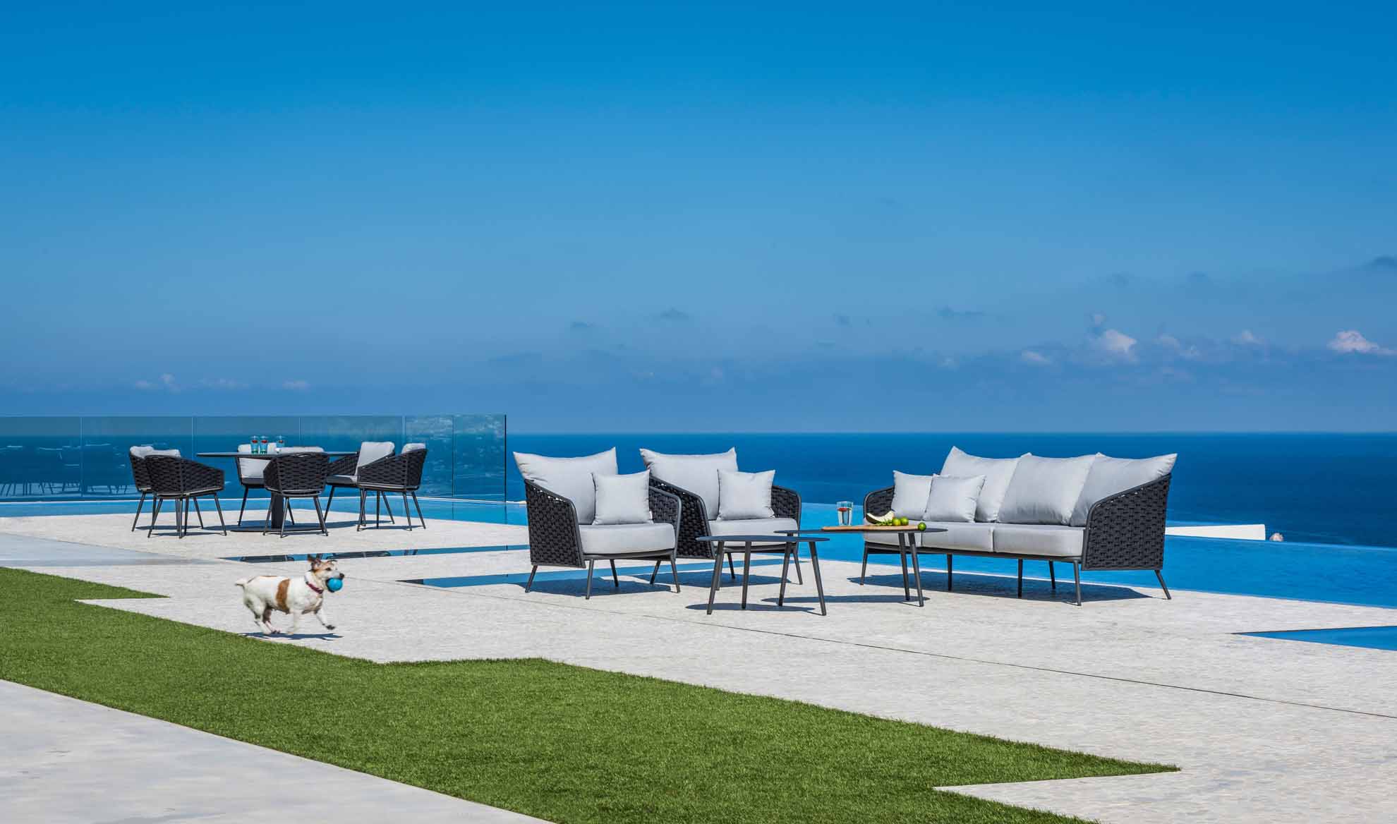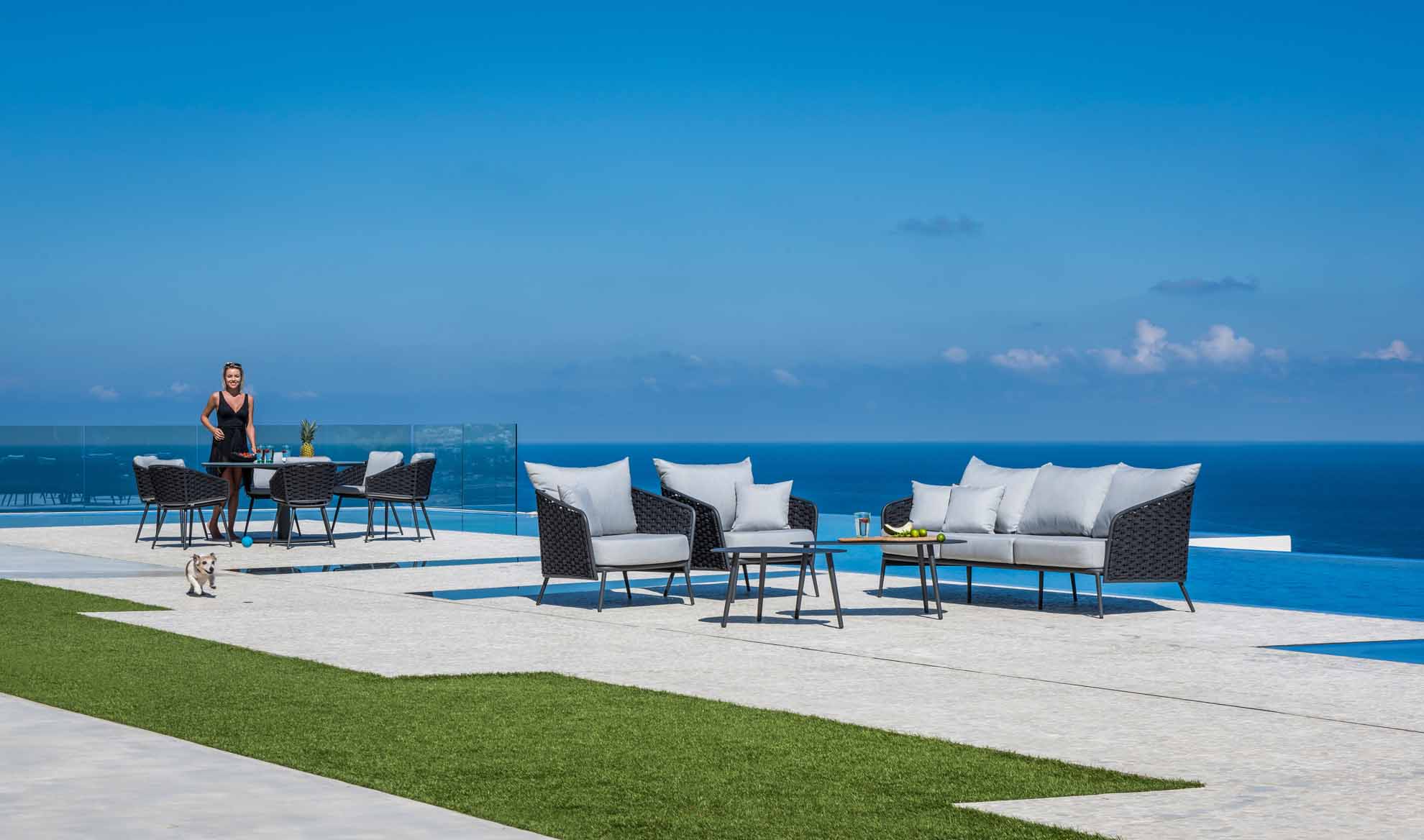Seilmöbel - Qualitätsfasern mit natürlichem Aussehen. Die Polyolefinfaser hat ein natürliches Aussehen, ist jedoch pflegeleicht und unempfindlich gegen die Kräfte von Mutter Natur. Das Seil ist sowohl für den Innen- als auch für den Außenbereich geeignet. Wie keine andere synthetische oder natürliche Faser ist sie resistent gegen Pilze, Bakterien, Sonnenlicht, Feuchtigkeit, Chlor, Lebensmittelflecken und Schweiß. Es ist extrem leicht, waschbar, umweltfreundlich und vollständig recycelbar. Kombinieren Sie die Sitze und Stühle aus Rope-Geflecht mit maßgeschneiderten, wetterbeständigen Kissen.