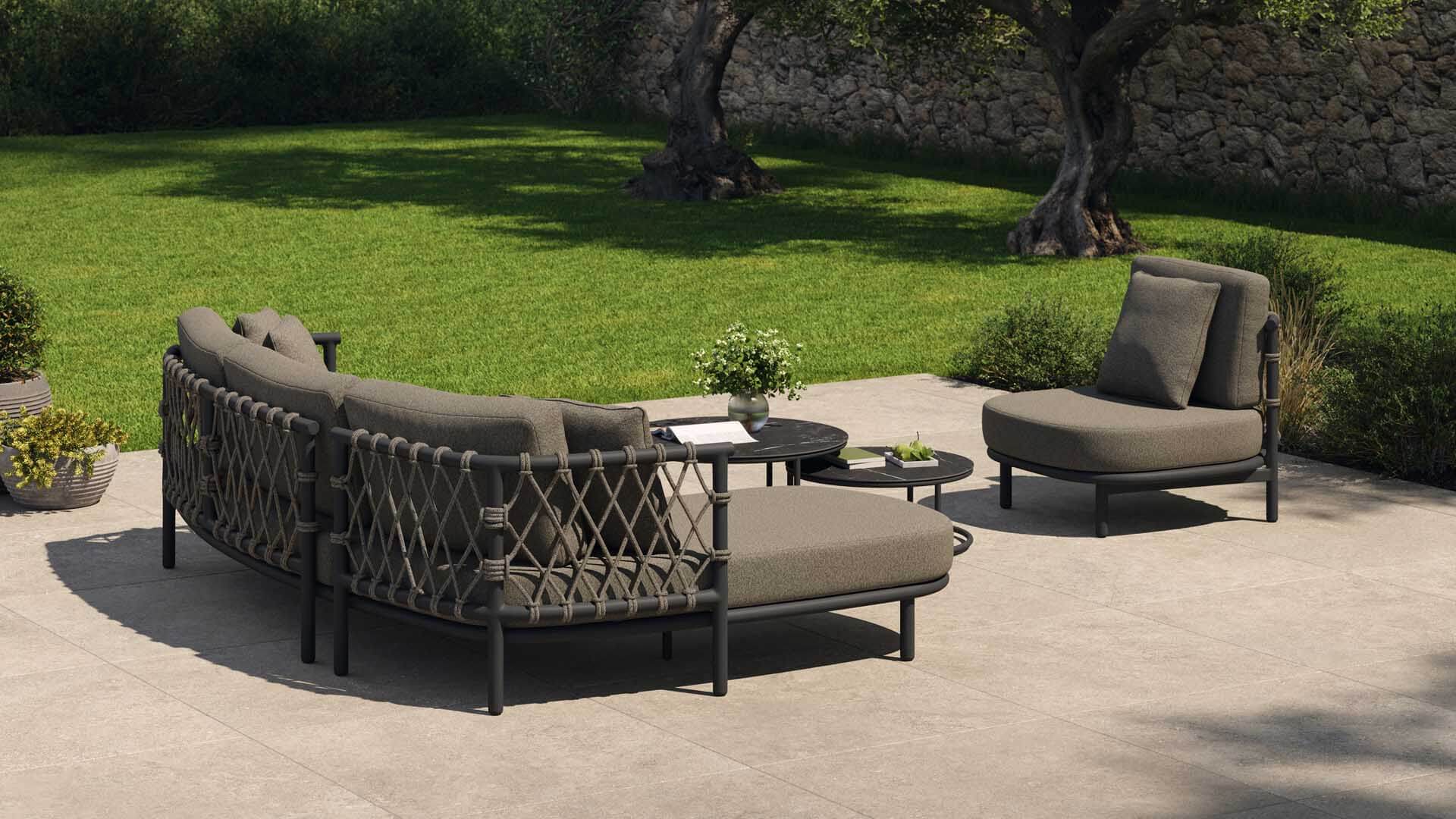 Seilmöbel - Qualitätsfasern mit natürlichem Aussehen. Die Polyolefinfaser hat ein natürliches Aussehen, ist jedoch pflegeleicht und unempfindlich gegen die Kräfte von Mutter Natur. Das Seil ist sowohl für den Innen- als auch für den Außenbereich geeignet. Wie keine andere synthetische oder natürliche Faser ist sie resistent gegen Pilze, Bakterien, Sonnenlicht, Feuchtigkeit, Chlor, Lebensmittelflecken und Schweiß. Es ist extrem leicht, waschbar, umweltfreundlich und vollständig recycelbar. Kombinieren Sie die Sitze und Stühle aus Rope-Geflecht mit maßgeschneiderten, wetterbeständigen Kissen.