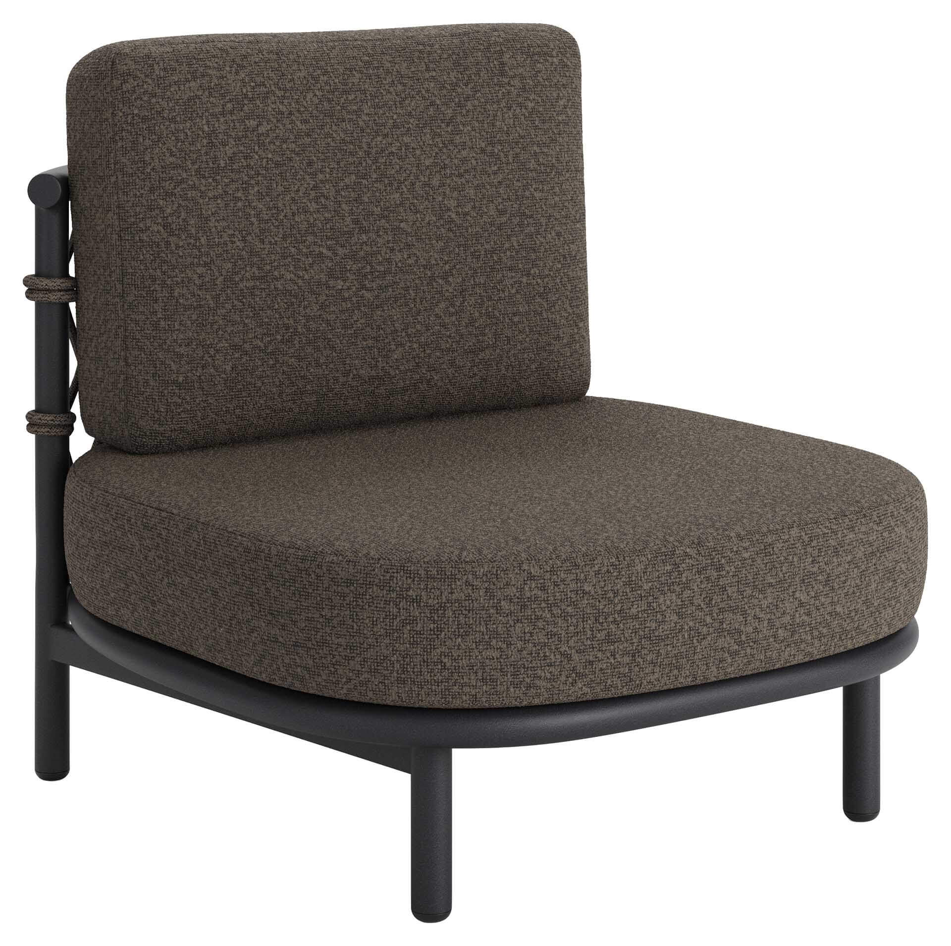 Der Mezzo Lounge 1-Sitzer ohne Armlehne ist ein vielseitiges Modul der Mezzo Kollektion. Das Aluminiumgestell in eisengrau bietet Stabilität und Wetterbeständigkeit, während das seitliche und rückseitige Rope-Geflecht in mocca den typischen Mezzo-Look prägt.