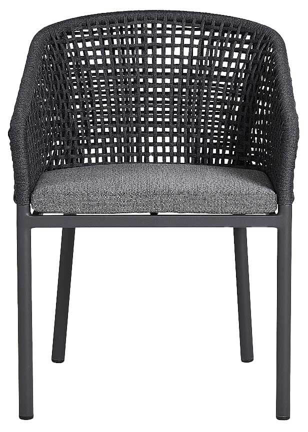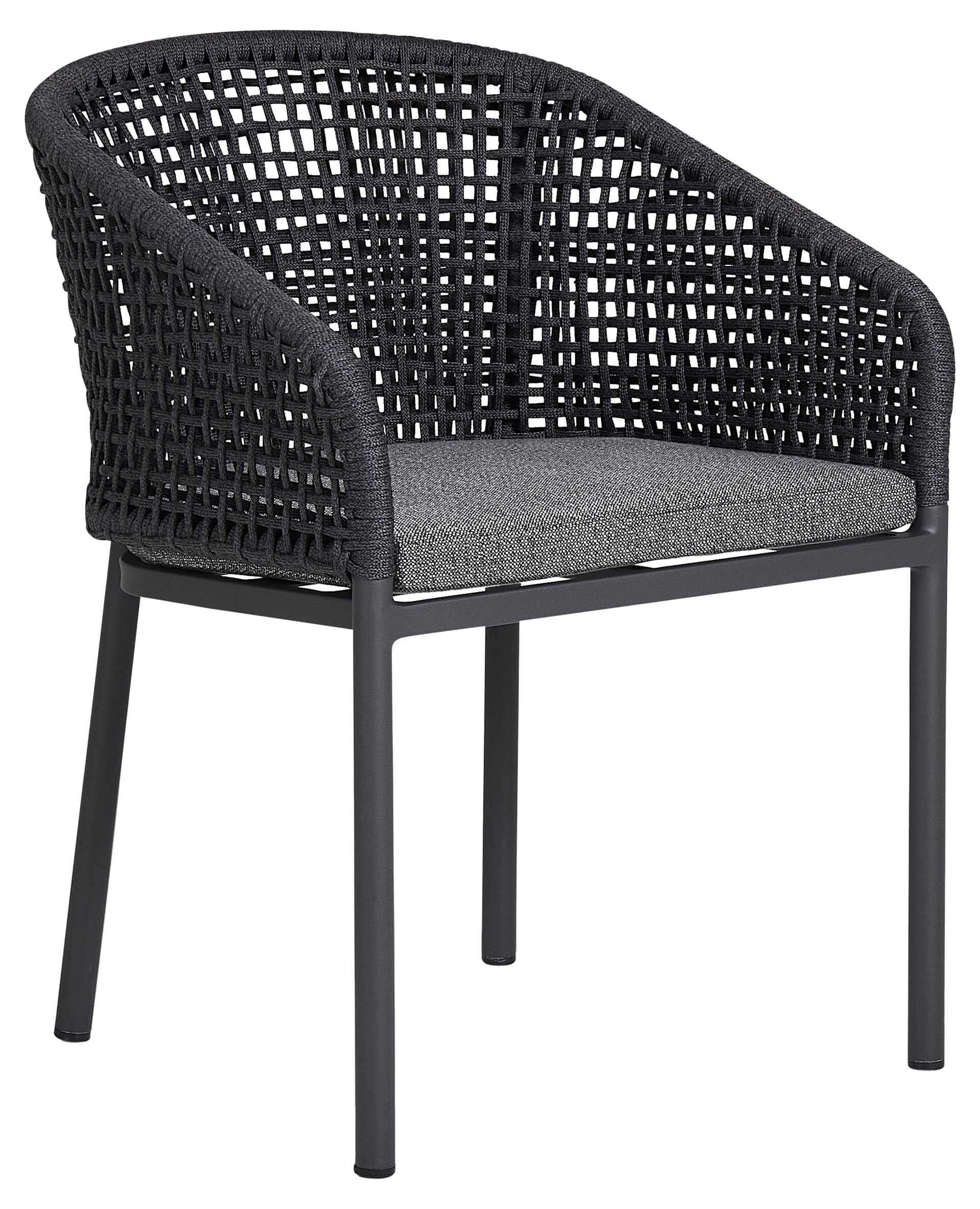 Die Rückenfläche ist mit einer offenen Rope-Flechtung in schwarz gestaltet. Dieses Detail kombiniert stilvolle Optik mit bequemem Sitzkomfort.