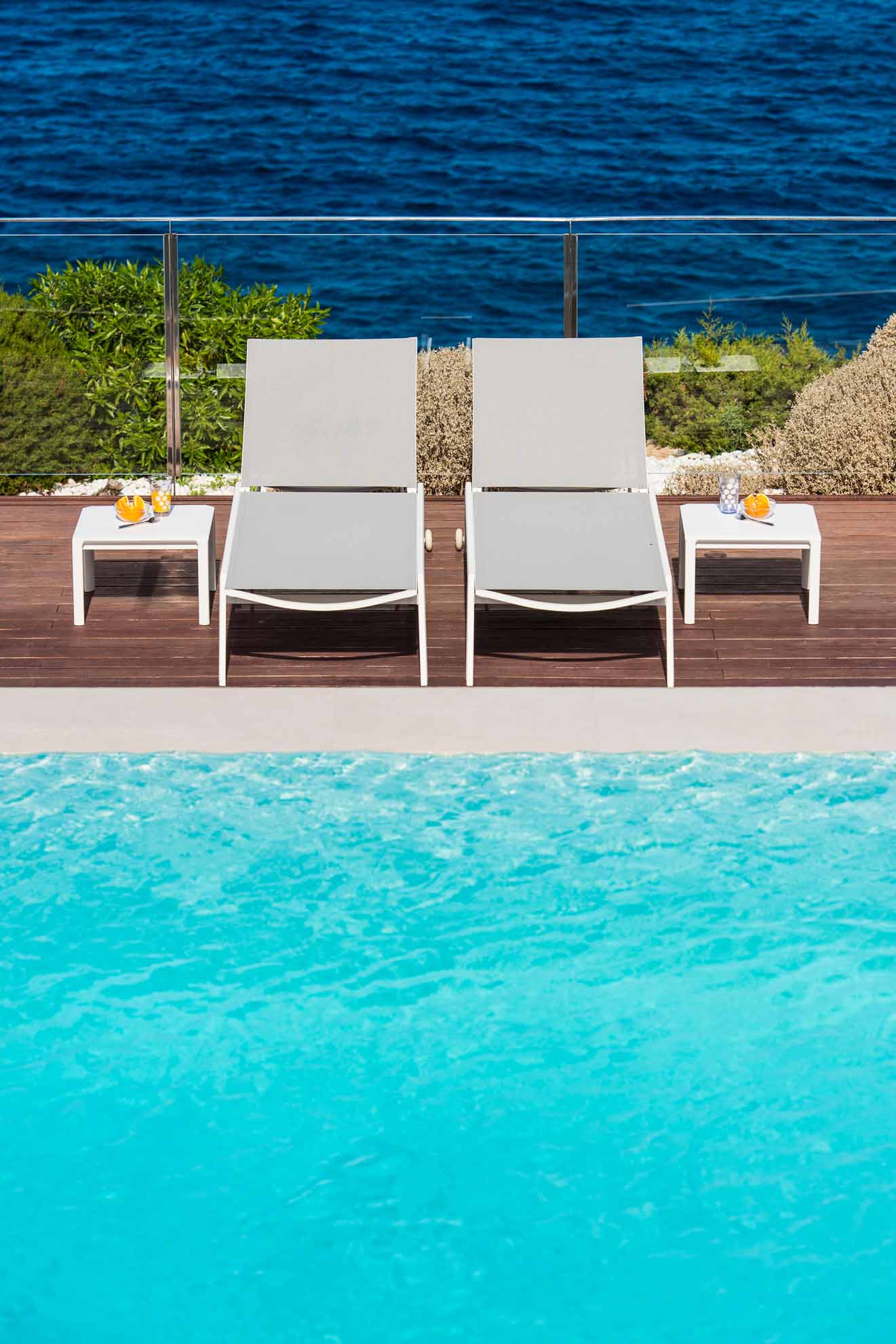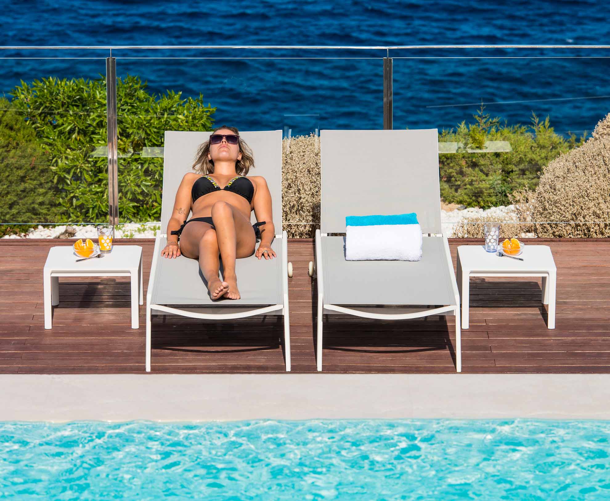 Hydra Sonnenliegen von Jati&Kebon haben ein Gestell aus Aluminium. Dieses Metall ist leicht, stabil und rostet nicht. Die Rücken- und Liegefläche besteht aus dem flexiblem Jatex-Gewebe. Es passt sich dem Körper an und sorgt dafür, daß die Sonnenliegen auch ohne Kissen schon sehr bequem sind. Die als Zubehör erhältlichen Kissen-Auflagen ergänzen den Komfort und machen aus der Liege einen weichen Platz zum ausruhen und entspannen. Die Hydra Liegen sind am Rahmen mit Rollen versehen, damit Sie Ihre Sonnenliege ganz leicht bei Bedarf verstellen können. Hydra Sonnenliege aus Aluminium mit verstellbarem Rückenteil & Rollen. Gestell eisengrau matt pulverbeschichtet, Bespannung Jatex-Gewebe silbergrau. Stapelbar.