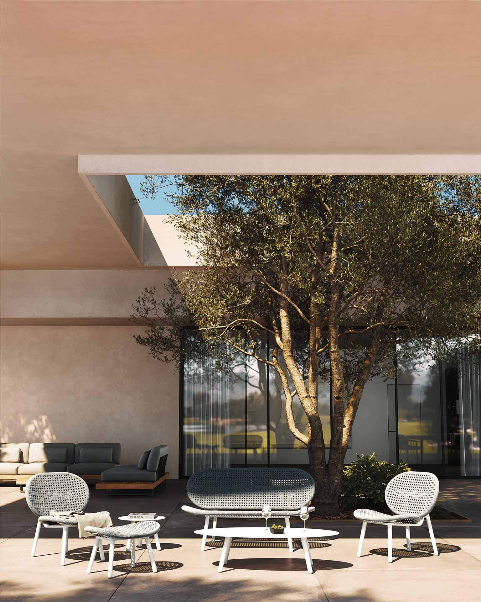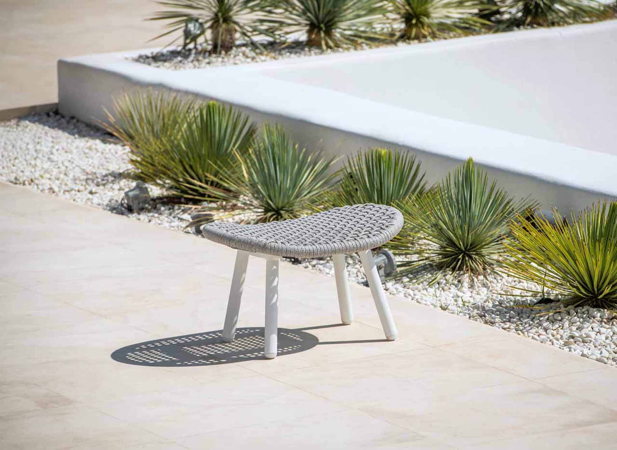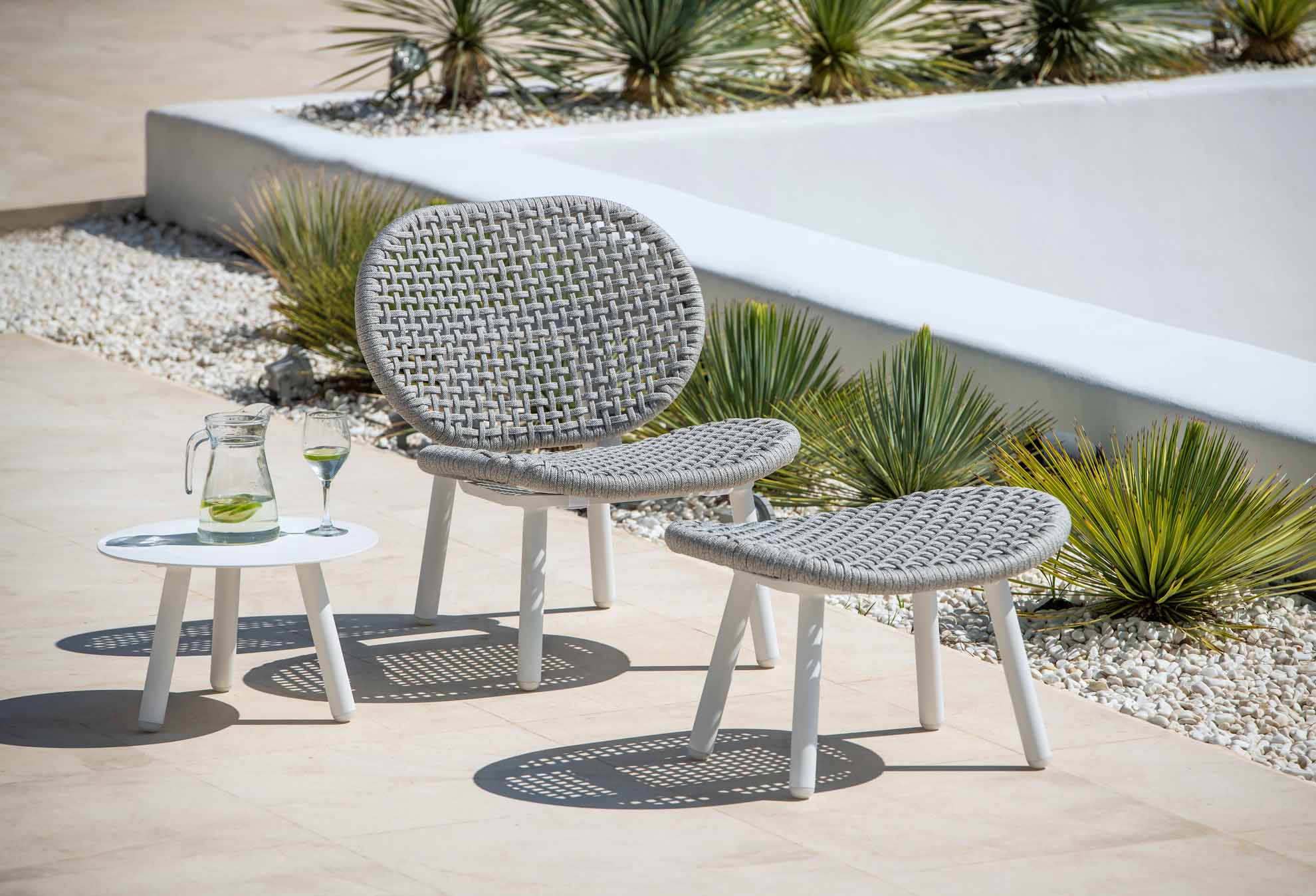Skate bricht die Regeln! Der Sessel und Hocker bildet einen wunderschönen Rückzugsort zum Verweilen und Füße hochlegen. Oder kombinieren Sie Skate mit Ecken und Kanten und lassen die Kontraste wirken. Die unverwüstlichen Aluminium Gestelle, mit samtweicher Rope geflochten, sind absolut wetterfest. Um diese Serie ganz exklusiv nach den jeweiligen Wünschen ausstatten zu können, bieten wir für die dazugehörigen Kissen eine große Auswahl an Stoff-Kissenfarben an. Das ermöglicht zahlreiche und außergewöhnliche Kombiationsmöglichkeiten für den ganz persönlichen Geschmack.